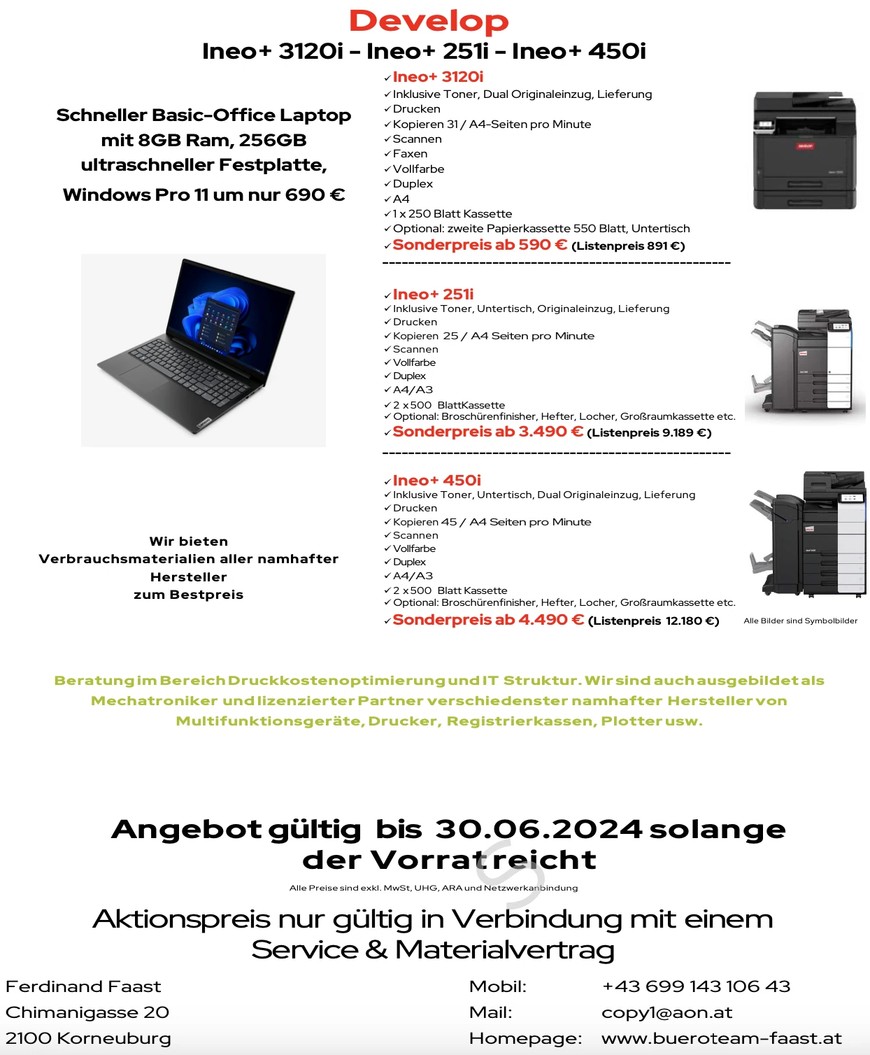 Sehr großes Augenmerk legen wir auf schnelle Reaktionszeiten im Service und der Beratung, im Bereich Optimierung von Kopie/Druckkosten, um eben die beste Lösung für Sie zu finden.